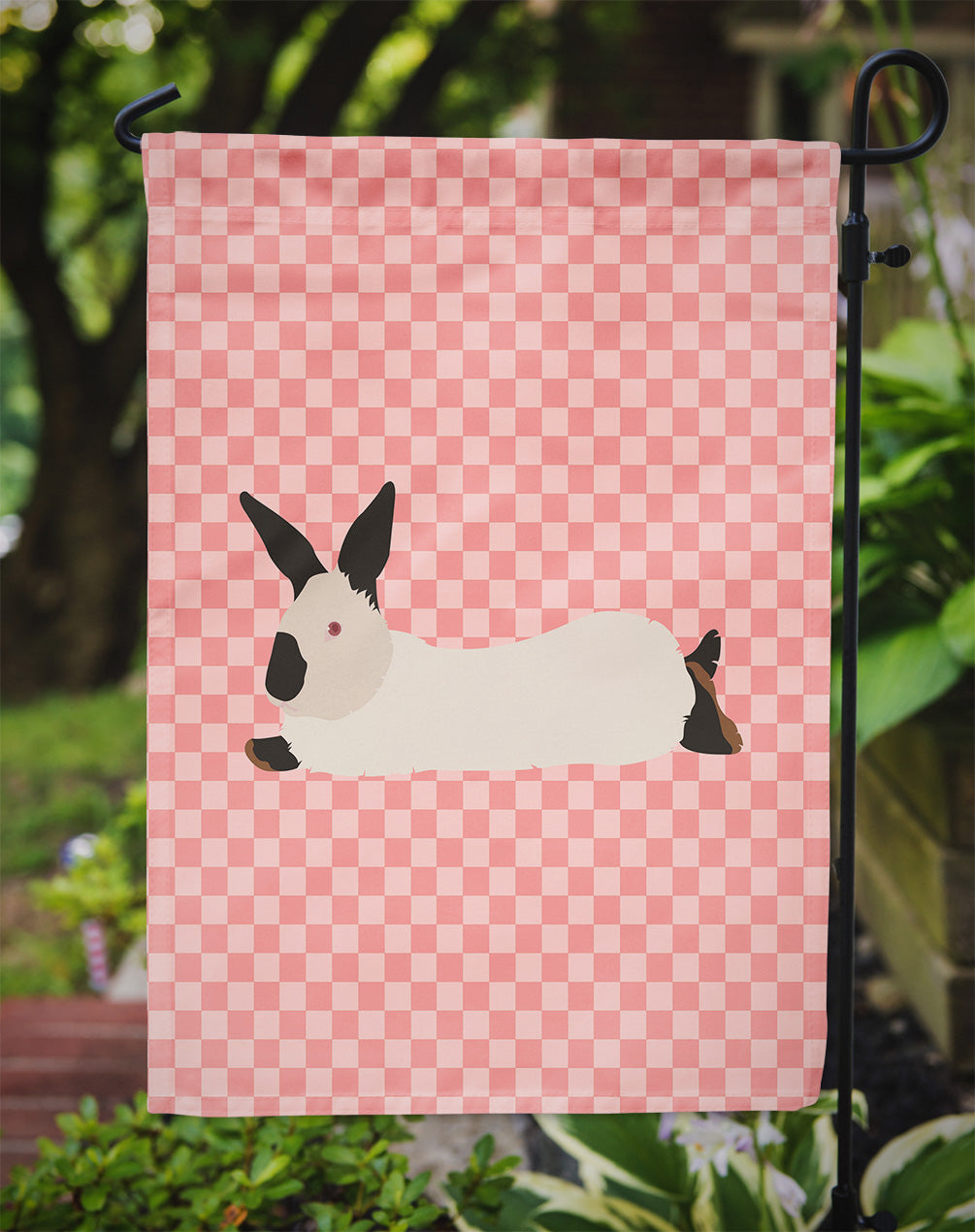 Decorate your space with Caroline's Treasures California White Rabbit artwork on a Garden Flag. Enhance the beauty of your garden, patio, or yard with Caroline's Treasures Decorative Garden Flag, proudly made in the USA. Crafted from two pieces of thick, double-sided polyester fabric, this 2-ply garden flag is designed to withstand various weather conditions, making it water-resistant and weatherproof. Featuring correctly readable words on both sides, this garden flag offers a delightful visual experience from any angle. With its heavier weight, it stands out among other garden flags, ensuring stability and durability even in wind, rain, and snow. Measuring approximately 11 1/4 inches by 15 1/2 inches, this flag allows you to personalize your outdoor decor. It comes with a 1 1/2-inch sleeve sewn in, allowing easy attachment to any standard garden flag stand or garden size porch hanger (sold separately). Make a statement in your outdoor space with Caroline's Treasures Decorative Garden Flag, a vibrant and high-quality flag that adds color and personality to your surroundings. Proudly made in the USA, it's a symbol of quality craftsmanship and attention to detail.