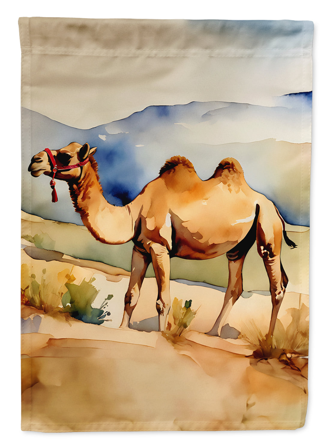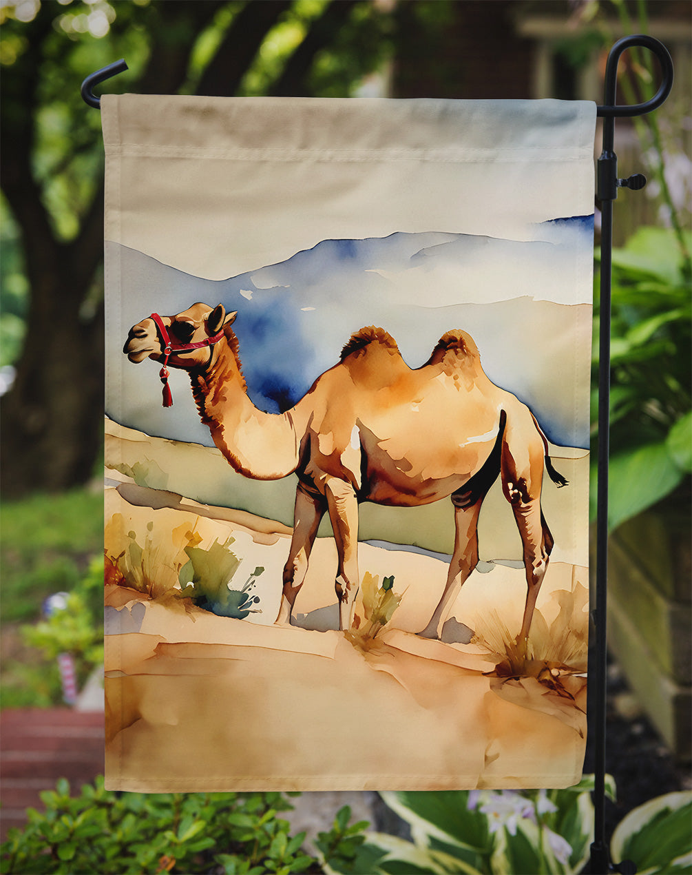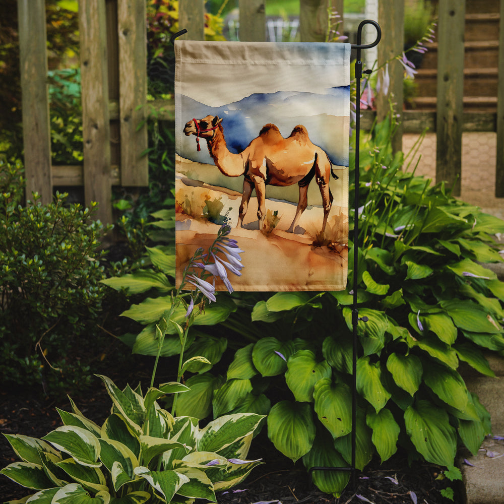 Decorate your space with Caroline's Treasures Camel artwork on a Garden Flag. Enhance the beauty of your garden, patio, or yard with Caroline's Treasures Decorative Garden Flag, proudly made in the USA. Crafted from two pieces of thick, double-sided polyester fabric, this 2-ply garden flag is designed to withstand various weather conditions, making it water-resistant and weatherproof. Featuring correctly readable words on both sides, this garden flag offers a delightful visual experience from any angle. With its heavier weight, it stands out among other garden flags, ensuring stability and durability even in wind, rain, and snow. Measuring approximately 11 1/4 inches by 15 1/2 inches, this flag allows you to personalize your outdoor decor. It comes with a 1 1/2-inch sleeve sewn in, allowing easy attachment to any standard garden flag stand or garden size porch hanger (sold separately). Make a statement in your outdoor space with Caroline's Treasures Decorative Garden Flag, a vibrant and high-quality flag that adds color and personality to your surroundings. Proudly made in the USA, it's a symbol of quality craftsmanship and attention to detail.