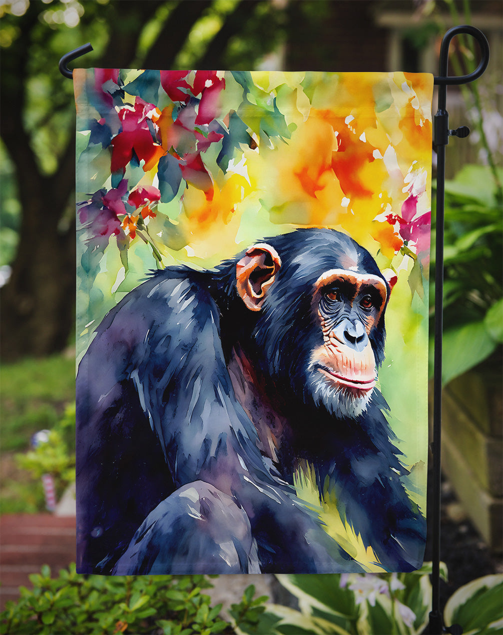 Decorate your space with Caroline's Treasures Chimpanzee artwork on a Garden Flag. Enhance the beauty of your garden, patio, or yard with Caroline's Treasures Decorative Garden Flag, proudly made in the USA. Crafted from two pieces of thick, double-sided polyester fabric, this 2-ply garden flag is designed to withstand various weather conditions, making it water-resistant and weatherproof. Featuring correctly readable words on both sides, this garden flag offers a delightful visual experience from any angle. With its heavier weight, it stands out among other garden flags, ensuring stability and durability even in wind, rain, and snow. Measuring approximately 11 1/4 inches by 15 1/2 inches, this flag allows you to personalize your outdoor decor. It comes with a 1 1/2-inch sleeve sewn in, allowing easy attachment to any standard garden flag stand or garden size porch hanger (sold separately). Make a statement in your outdoor space with Caroline's Treasures Decorative Garden Flag, a vibrant and high-quality flag that adds color and personality to your surroundings. Proudly made in the USA, it's a symbol of quality craftsmanship and attention to detail.
