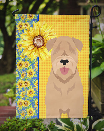 Decorate your space with Caroline's Treasures Wheaten Terrier artwork on a Garden Flag. Bring a bit of Summer into your home with a Summer Garden Flag. Enhance the beauty of your garden, patio, or yard with Caroline's Treasures Decorative Garden Flag, proudly made in the USA. Crafted from two pieces of thick, double-sided polyester fabric, this 2-ply garden flag is designed to withstand various weather conditions, making it water-resistant and weatherproof. Featuring correctly readable words on both sides, this garden flag offers a delightful visual experience from any angle. With its heavier weight, it stands out among other garden flags, ensuring stability and durability even in wind, rain, and snow. Measuring approximately 11 1/4 inches by 15 1/2 inches, this flag allows you to personalize your outdoor decor. It comes with a 1 1/2-inch sleeve sewn in, allowing easy attachment to any standard garden flag stand or garden size porch hanger (sold separately). Make a statement in your outdoor space with Caroline's Treasures Decorative Garden Flag, a vibrant and high-quality flag that adds color and personality to your surroundings. Proudly made in the USA, it's a symbol of quality craftsmanship and attention to detail.