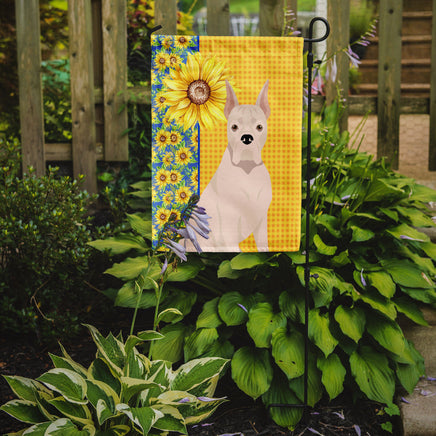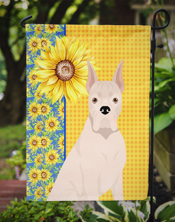 Decorate your space with Caroline's Treasures Boxer artwork on a Garden Flag. Bring a bit of Summer into your home with a Summer Garden Flag. Enhance the beauty of your garden, patio, or yard with Caroline's Treasures Decorative Garden Flag, proudly made in the USA. Crafted from two pieces of thick, double-sided polyester fabric, this 2-ply garden flag is designed to withstand various weather conditions, making it water-resistant and weatherproof. Featuring correctly readable words on both sides, this garden flag offers a delightful visual experience from any angle. With its heavier weight, it stands out among other garden flags, ensuring stability and durability even in wind, rain, and snow. Measuring approximately 11 1/4 inches by 15 1/2 inches, this flag allows you to personalize your outdoor decor. It comes with a 1 1/2-inch sleeve sewn in, allowing easy attachment to any standard garden flag stand or garden size porch hanger (sold separately). Make a statement in your outdoor space with Caroline's Treasures Decorative Garden Flag, a vibrant and high-quality flag that adds color and personality to your surroundings. Proudly made in the USA, it's a symbol of quality craftsmanship and attention to detail.