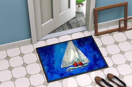 Welcome your guests in style with Caroline's Treasures Artwork Door Mat, designed to withstand almost any weather condition. This mat, measuring approximately 18 by 27 inches, is held together by durable black binding tape. Its top layer, composed of polyester felt, is dyed with the eye-catching image you see on the mat. A few layers below provide the mat with stability, while its rubber bottom is stamped to help prevent slipping and ensures safety. Caroline's Treasures mat works wonderfully as both an indoor or outdoor door mat. For cleaning, simply hose it off with water or use a power washer - no need for any cleaner that produces suds. Avoid scrubbing with a brush, instead, opt for the vacuum on floor setting. Designed manufactured and printed in the USA, this mat is a perfect addition to your porch, outdoor kitchen, entryway, or any indoor space. Its unique design makes it a charming decorative rug that greets your guests and adds a stylish touch to your home decor.