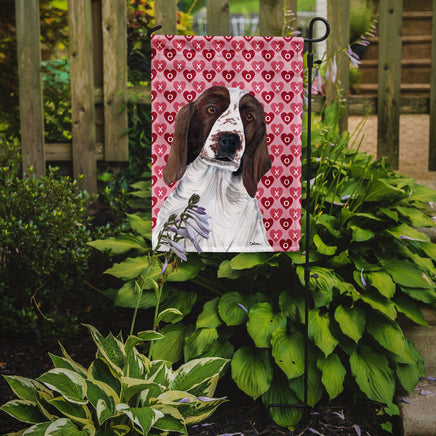 Decorate your space with Caroline's Treasures Valentine's Day Welsh Springer Spaniel artwork on a Garden Flag. Enhance the beauty of your garden, patio, or yard with Caroline's Treasures Decorative Garden Flag, proudly made in the USA. Crafted from two pieces of thick, double-sided polyester fabric, this 2-ply garden flag is designed to withstand various weather conditions, making it water-resistant and weatherproof. Featuring correctly readable words on both sides, this garden flag offers a delightful visual experience from any angle. With its heavier weight, it stands out among other garden flags, ensuring stability and durability even in wind, rain, and snow. Measuring approximately 11 1/4 inches by 15 1/2 inches, this flag allows you to personalize your outdoor decor. It comes with a 1 1/2-inch sleeve sewn in, allowing easy attachment to any standard garden flag stand or garden size porch hanger (sold separately). Make a statement in your outdoor space with Caroline's Treasures Decorative Garden Flag, a vibrant and high-quality flag that adds color and personality to your surroundings. Proudly made in the USA, it's a symbol of quality craftsmanship and attention to detail.