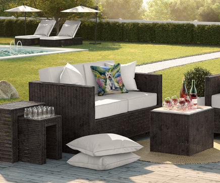 Decorate your space with Caroline's Treasures West Highland White Terrier artwork on a Pillow. Bring a bit of Spring into your home with a Spring Pillow. Revitalize your outdoor or indoor living space with Caroline's Treasures 18x18 Fabric Decorative Pillow. With a generously sized dimension of approximately 18 inches by 18 inches, this pillow makes a comfortable and aesthetic addition to any seating area. Made from a unique, water-resistant material developed by Caroline's Treasures, the pillow sham is 100% polyester fabric that's durable and ready to weather any condition. Its vibrant, full-color artwork will not fade over time as it is dyed with color-fast dyes. Whether you place it on your patio furniture, porch, veranda, or indoor couch, its soft canvas fabric ensures a cozy experience. The pillow is handcrafted in the United States, featuring a sham created from three pieces of fabric and a polyester insert for enduring shape and overstuffed comfort. Despite being robustly built to endure the outdoors, it is as soft and snug as your favorite indoor cushions. Please note, as all Caroline's Treasures pillows are handmade, sizes may vary slightly, adding to the charm of this unique decorative item.