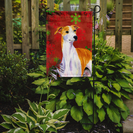 Decorate your space with Caroline's Treasures Christmas Whippet artwork on a Garden Flag. Enhance the beauty of your garden, patio, or yard with Caroline's Treasures Decorative Garden Flag, proudly made in the USA. Crafted from two pieces of thick, double-sided polyester fabric, this 2-ply garden flag is designed to withstand various weather conditions, making it water-resistant and weatherproof. Featuring correctly readable words on both sides, this garden flag offers a delightful visual experience from any angle. With its heavier weight, it stands out among other garden flags, ensuring stability and durability even in wind, rain, and snow. Measuring approximately 11 1/4 inches by 15 1/2 inches, this flag allows you to personalize your outdoor decor. It comes with a 1 1/2-inch sleeve sewn in, allowing easy attachment to any standard garden flag stand or garden size porch hanger (sold separately). Make a statement in your outdoor space with Caroline's Treasures Decorative Garden Flag, a vibrant and high-quality flag that adds color and personality to your surroundings. Proudly made in the USA, it's a symbol of quality craftsmanship and attention to detail.