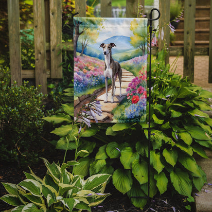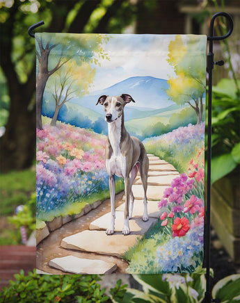 Decorate your space with Caroline's Treasures Whippet artwork on a Garden Flag. Bring a bit of Spring into your home with a Spring Garden Flag. Enhance the beauty of your garden, patio, or yard with Caroline's Treasures Decorative Garden Flag, proudly made in the USA. Crafted from two pieces of thick, double-sided polyester fabric, this 2-ply garden flag is designed to withstand various weather conditions, making it water-resistant and weatherproof. Featuring correctly readable words on both sides, this garden flag offers a delightful visual experience from any angle. With its heavier weight, it stands out among other garden flags, ensuring stability and durability even in wind, rain, and snow. Measuring approximately 11 1/4 inches by 15 1/2 inches, this flag allows you to personalize your outdoor decor. It comes with a 1 1/2-inch sleeve sewn in, allowing easy attachment to any standard garden flag stand or garden size porch hanger (sold separately). Make a statement in your outdoor space with Caroline's Treasures Decorative Garden Flag, a vibrant and high-quality flag that adds color and personality to your surroundings. Proudly made in the USA, it's a symbol of quality craftsmanship and attention to detail.