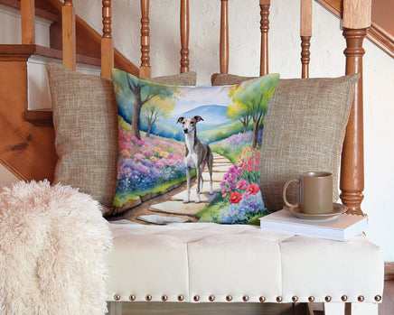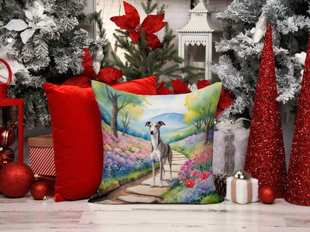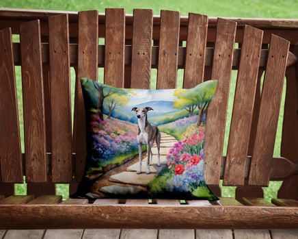 Decorate your space with Caroline's Treasures Whippet artwork on a Pillow. Bring a bit of Spring into your home with a Spring Pillow. Add a touch of vibrancy and comfort to your outdoor seating with Caroline's Treasures Fabric Decorative Pillow. Measuring approximately 14 inches by 14 inches, this outdoor pillow is crafted to elevate the appeal of your patio furniture, infusing it with vivid color and artistic flair. The pillow includes a 100% Polyester Fabric sham filled with a quality pillow form to provide superior comfort. Innovatively made from Caroline's Treasures brand new material, specifically woven for its water resistance, this pillow is designed for durability. The soft canvas fabric offers versatility in use, fit for your indoor couch or your outdoor patio, porch, or veranda. The fabric is dyed with colorfast dyes built for resilience against weather conditions, ensuring the pillow retains its beauty over time. Constructed by sewing three fabric pieces to create a sham, the polyester insert is then nestled inside to form the pillow, resulting in an overstuffed pillow that maintains its shape. Both the sham and the pillow insert are proudly made in the United States. As the pillows are handcrafted, there may be minor variations in size, further enhancing their unique charm. Experience comfort in style with Caroline's Treasures Fabric Decorative Pillow.