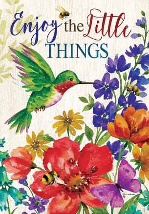 These house and garden flags are double-sided allowing for the "Enjoy the Little Things" message to be read correctly from both sides. Each flag is printed in the U.S.A. using a fade resistant ink, on luxurious velvety soft heavyweight fabric and designed to hang outdoors.