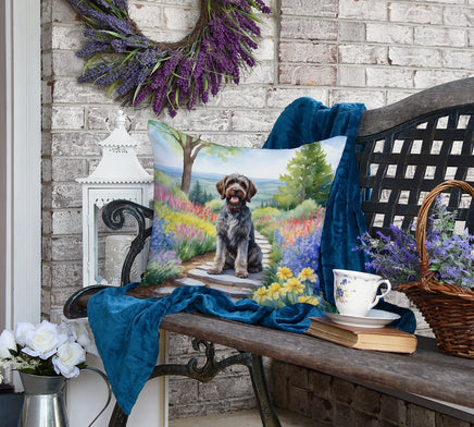Decorate your space with Caroline's Treasures Wirehaired Pointing Griffon artwork on a Pillow. Bring a bit of Spring into your home with a Spring Pillow. Revitalize your outdoor or indoor living space with Caroline's Treasures 18x18 Fabric Decorative Pillow. With a generously sized dimension of approximately 18 inches by 18 inches, this pillow makes a comfortable and aesthetic addition to any seating area. Made from a unique, water-resistant material developed by Caroline's Treasures, the pillow sham is 100% polyester fabric that's durable and ready to weather any condition. Its vibrant, full-color artwork will not fade over time as it is dyed with color-fast dyes. Whether you place it on your patio furniture, porch, veranda, or indoor couch, its soft canvas fabric ensures a cozy experience. The pillow is handcrafted in the United States, featuring a sham created from three pieces of fabric and a polyester insert for enduring shape and overstuffed comfort. Despite being robustly built to endure the outdoors, it is as soft and snug as your favorite indoor cushions. Please note, as all Caroline's Treasures pillows are handmade, sizes may vary slightly, adding to the charm of this unique decorative item.