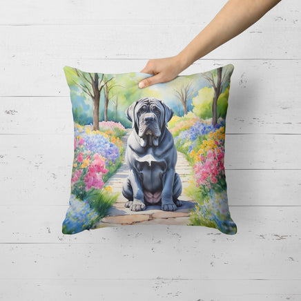 Decorate your space with Caroline's Treasures Neapolitan Mastiff artwork on a Pillow. Bring a bit of Spring into your home with a Spring Pillow. Revitalize your outdoor or indoor living space with Caroline's Treasures 18x18 Fabric Decorative Pillow. With a generously sized dimension of approximately 18 inches by 18 inches, this pillow makes a comfortable and aesthetic addition to any seating area. Made from a unique, water-resistant material developed by Caroline's Treasures, the pillow sham is 100% polyester fabric that's durable and ready to weather any condition. Its vibrant, full-color artwork will not fade over time as it is dyed with color-fast dyes. Whether you place it on your patio furniture, porch, veranda, or indoor couch, its soft canvas fabric ensures a cozy experience. The pillow is handcrafted in the United States, featuring a sham created from three pieces of fabric and a polyester insert for enduring shape and overstuffed comfort. Despite being robustly built to endure the outdoors, it is as soft and snug as your favorite indoor cushions. Please note, as all Caroline's Treasures pillows are handmade, sizes may vary slightly, adding to the charm of this unique decorative item.