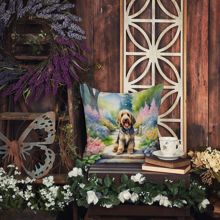 Decorate your space with Caroline's Treasures Otterhound artwork on a Pillow. Bring a bit of Spring into your home with a Spring Pillow. Revitalize your outdoor or indoor living space with Caroline's Treasures 18x18 Fabric Decorative Pillow. With a generously sized dimension of approximately 18 inches by 18 inches, this pillow makes a comfortable and aesthetic addition to any seating area. Made from a unique, water-resistant material developed by Caroline's Treasures, the pillow sham is 100% polyester fabric that's durable and ready to weather any condition. Its vibrant, full-color artwork will not fade over time as it is dyed with color-fast dyes. Whether you place it on your patio furniture, porch, veranda, or indoor couch, its soft canvas fabric ensures a cozy experience. The pillow is handcrafted in the United States, featuring a sham created from three pieces of fabric and a polyester insert for enduring shape and overstuffed comfort. Despite being robustly built to endure the outdoors, it is as soft and snug as your favorite indoor cushions. Please note, as all Caroline's Treasures pillows are handmade, sizes may vary slightly, adding to the charm of this unique decorative item.