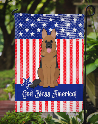 Decorate your space with our German Shepherd artwork on a Garden Flag. Enhance the beauty of your garden, patio, or yard with Caroline's Treasures Decorative Garden Flag, proudly made in the USA. Crafted from two pieces of thick, double-sided polyester fabric, this 2-ply garden flag is designed to withstand various weather conditions, making it water-resistant and weatherproof. Featuring correctly readable words on both sides, this garden flag offers a delightful visual experience from any angle. With its heavier weight, it stands out among other garden flags, ensuring stability and durability even in wind, rain, and snow. Measuring approximately 11 1/4 inches by 15 1/2 inches, this flag allows you to personalize your outdoor decor. It comes with a 1 1/2-inch sleeve sewn in, allowing easy attachment to any standard garden flag stand or garden size porch hanger (sold separately). Make a statement in your outdoor space with Caroline's Treasures Decorative Garden Flag, a vibrant and high-quality flag that adds color and personality to your surroundings. Proudly made in the USA, it's a symbol of quality craftsmanship and attention to detail.