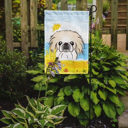 Decorate your space with Caroline's Treasures Pekingese artwork on a Garden Flag. Bring a bit of Summer into your home with a Summer Garden Flag. Enhance the beauty of your garden, patio, or yard with Caroline's Treasures Decorative Garden Flag, proudly made in the USA. Crafted from two pieces of thick, double-sided polyester fabric, this 2-ply garden flag is designed to withstand various weather conditions, making it water-resistant and weatherproof. Featuring correctly readable words on both sides, this garden flag offers a delightful visual experience from any angle. With its heavier weight, it stands out among other garden flags, ensuring stability and durability even in wind, rain, and snow. Measuring approximately 11 1/4 inches by 15 1/2 inches, this flag allows you to personalize your outdoor decor. It comes with a 1 1/2-inch sleeve sewn in, allowing easy attachment to any standard garden flag stand or garden size porch hanger (sold separately). Make a statement in your outdoor space with Caroline's Treasures Decorative Garden Flag, a vibrant and high-quality flag that adds color and personality to your surroundings. Proudly made in the USA, it's a symbol of quality craftsmanship and attention to detail.