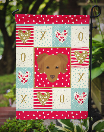Decorate your space with our Valentine's Day Chihuahua artwork on a Garden Flag. Enhance the beauty of your garden, patio, or yard with Caroline's Treasures Decorative Garden Flag, proudly made in the USA. Crafted from two pieces of thick, double-sided polyester fabric, this 2-ply garden flag is designed to withstand various weather conditions, making it water-resistant and weatherproof. Featuring correctly readable words on both sides, this garden flag offers a delightful visual experience from any angle. With its heavier weight, it stands out among other garden flags, ensuring stability and durability even in wind, rain, and snow. Measuring approximately 11 1/4 inches by 15 1/2 inches, this flag allows you to personalize your outdoor decor. It comes with a 1 1/2-inch sleeve sewn in, allowing easy attachment to any standard garden flag stand or garden size porch hanger (sold separately). Make a statement in your outdoor space with Caroline's Treasures Decorative Garden Flag, a vibrant and high-quality flag that adds color and personality to your surroundings. Proudly made in the USA, it's a symbol of quality craftsmanship and attention to detail.