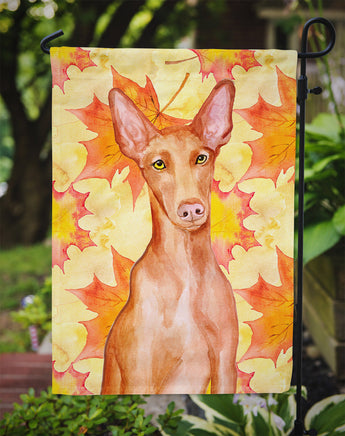Decorate your space with our Pharaoh Hound artwork on a Garden Flag. Enhance the beauty of your garden, patio, or yard with Caroline's Treasures Decorative Garden Flag, proudly made in the USA. Crafted from two pieces of thick, double-sided polyester fabric, this 2-ply garden flag is designed to withstand various weather conditions, making it water-resistant and weatherproof. Featuring correctly readable words on both sides, this garden flag offers a delightful visual experience from any angle. With its heavier weight, it stands out among other garden flags, ensuring stability and durability even in wind, rain, and snow. Measuring approximately 11 1/4 inches by 15 1/2 inches, this flag allows you to personalize your outdoor decor. It comes with a 1 1/2-inch sleeve sewn in, allowing easy attachment to any standard garden flag stand or garden size porch hanger (sold separately). Make a statement in your outdoor space with Caroline's Treasures Decorative Garden Flag, a vibrant and high-quality flag that adds color and personality to your surroundings. Proudly made in the USA, it's a symbol of quality craftsmanship and attention to detail.