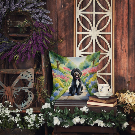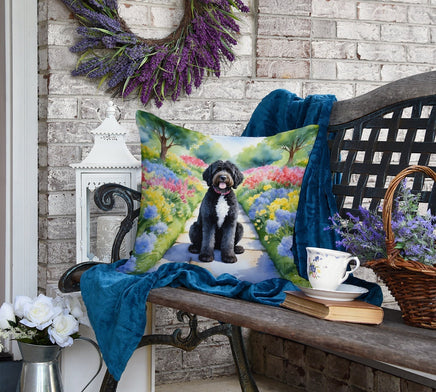 Decorate your space with Caroline's Treasures Portuguese Water Dog artwork on a Pillow. Bring a bit of Spring into your home with a Spring Pillow. Revitalize your outdoor or indoor living space with Caroline's Treasures 18x18 Fabric Decorative Pillow. With a generously sized dimension of approximately 18 inches by 18 inches, this pillow makes a comfortable and aesthetic addition to any seating area. Made from a unique, water-resistant material developed by Caroline's Treasures, the pillow sham is 100% polyester fabric that's durable and ready to weather any condition. Its vibrant, full-color artwork will not fade over time as it is dyed with color-fast dyes. Whether you place it on your patio furniture, porch, veranda, or indoor couch, its soft canvas fabric ensures a cozy experience. The pillow is handcrafted in the United States, featuring a sham created from three pieces of fabric and a polyester insert for enduring shape and overstuffed comfort. Despite being robustly built to endure the outdoors, it is as soft and snug as your favorite indoor cushions. Please note, as all Caroline's Treasures pillows are handmade, sizes may vary slightly, adding to the charm of this unique decorative item.