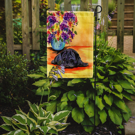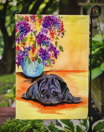 Decorate your space with our Pug artwork on a Garden Flag. Enhance the beauty of your garden, patio, or yard with Caroline's Treasures Decorative Garden Flag, proudly made in the USA. Crafted from two pieces of thick, double-sided polyester fabric, this 2-ply garden flag is designed to withstand various weather conditions, making it water-resistant and weatherproof. Featuring correctly readable words on both sides, this garden flag offers a delightful visual experience from any angle. With its heavier weight, it stands out among other garden flags, ensuring stability and durability even in wind, rain, and snow. Measuring approximately 11 1/4 inches by 15 1/2 inches, this flag allows you to personalize your outdoor decor. It comes with a 1 1/2-inch sleeve sewn in, allowing easy attachment to any standard garden flag stand or garden size porch hanger (sold separately). Make a statement in your outdoor space with Caroline's Treasures Decorative Garden Flag, a vibrant and high-quality flag that adds color and personality to your surroundings. Proudly made in the USA, it's a symbol of quality craftsmanship and attention to detail.