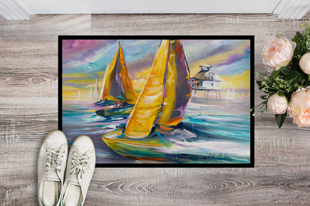 Sailboat with Middle Bay Lighthouse Indoor or Outdoor Mat 24x36 JMK1061JMAT