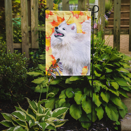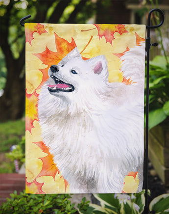 Decorate your space with our Samoyed artwork on a Garden Flag. Enhance the beauty of your garden, patio, or yard with Caroline's Treasures Decorative Garden Flag, proudly made in the USA. Crafted from two pieces of thick, double-sided polyester fabric, this 2-ply garden flag is designed to withstand various weather conditions, making it water-resistant and weatherproof. Featuring correctly readable words on both sides, this garden flag offers a delightful visual experience from any angle. With its heavier weight, it stands out among other garden flags, ensuring stability and durability even in wind, rain, and snow. Measuring approximately 11 1/4 inches by 15 1/2 inches, this flag allows you to personalize your outdoor decor. It comes with a 1 1/2-inch sleeve sewn in, allowing easy attachment to any standard garden flag stand or garden size porch hanger (sold separately). Make a statement in your outdoor space with Caroline's Treasures Decorative Garden Flag, a vibrant and high-quality flag that adds color and personality to your surroundings. Proudly made in the USA, it's a symbol of quality craftsmanship and attention to detail.
