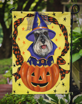 Decorate your space with our Halloween Schnauzer artwork on a Garden Flag. Enhance the beauty of your garden, patio, or yard with Caroline's Treasures Decorative Garden Flag, proudly made in the USA. Crafted from two pieces of thick, double-sided polyester fabric, this 2-ply garden flag is designed to withstand various weather conditions, making it water-resistant and weatherproof. Featuring correctly readable words on both sides, this garden flag offers a delightful visual experience from any angle. With its heavier weight, it stands out among other garden flags, ensuring stability and durability even in wind, rain, and snow. Measuring approximately 11 1/4 inches by 15 1/2 inches, this flag allows you to personalize your outdoor decor. It comes with a 1 1/2-inch sleeve sewn in, allowing easy attachment to any standard garden flag stand or garden size porch hanger (sold separately). Make a statement in your outdoor space with Caroline's Treasures Decorative Garden Flag, a vibrant and high-quality flag that adds color and personality to your surroundings. Proudly made in the USA, it's a symbol of quality craftsmanship and attention to detail.