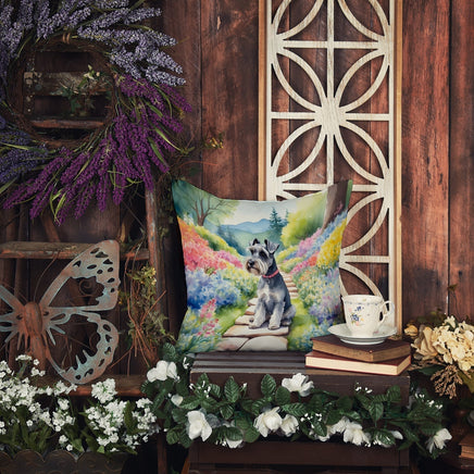 Decorate your space with Caroline's Treasures Schnauzer artwork on a Pillow. Bring a bit of Spring into your home with a Spring Pillow. Revitalize your outdoor or indoor living space with Caroline's Treasures 18x18 Fabric Decorative Pillow. With a generously sized dimension of approximately 18 inches by 18 inches, this pillow makes a comfortable and aesthetic addition to any seating area. Made from a unique, water-resistant material developed by Caroline's Treasures, the pillow sham is 100% polyester fabric that's durable and ready to weather any condition. Its vibrant, full-color artwork will not fade over time as it is dyed with color-fast dyes. Whether you place it on your patio furniture, porch, veranda, or indoor couch, its soft canvas fabric ensures a cozy experience. The pillow is handcrafted in the United States, featuring a sham created from three pieces of fabric and a polyester insert for enduring shape and overstuffed comfort. Despite being robustly built to endure the outdoors, it is as soft and snug as your favorite indoor cushions. Please note, as all Caroline's Treasures pillows are handmade, sizes may vary slightly, adding to the charm of this unique decorative item.