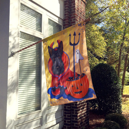 Decorate your space with our Halloween Scottish Terrier artwork on a Large Flag. Presenting our Heavy Duty Polyester House Size Decorative Sleeve Pole Flag, a vibrant addition to enhance the aesthetic appeal of your home. This large decorative flag, measuring approximately 28 x 40 inches, offers ample coverage and visibility. Each flag is meticulously sewn and made individually, ensuring a unique piece that may slightly vary in size. It's a sleeve pole flag, designed to fit a standard decorative flag pole effortlessly. Please note that the flag pole and bracket are not included and should be purchased separately. What sets our flag apart is its dual-sided print. The design is mirrored on both sides of the fabric, allowing for uniform visibility regardless of the angle. Printed in full color, our flag showcases vibrant hues that truly stand out. To ensure lasting vibrancy and durability, the dyes are heat-set into the fabric. This ensures your flag remains bright and captivating through various weather conditions. Elevate the look of your home with our Heavy Duty Polyester House Size Decorative Sleeve Pole Flag!