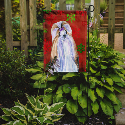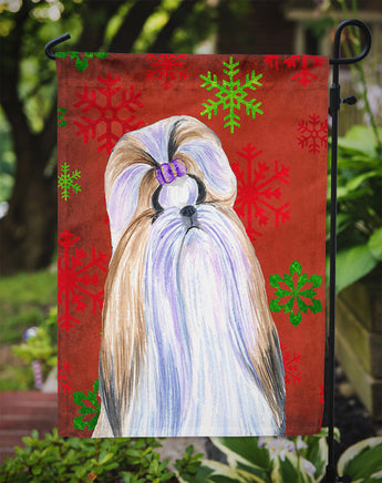 Shih Tzu Red and Green Snowflakes Holiday Christmas Flag Garden Size