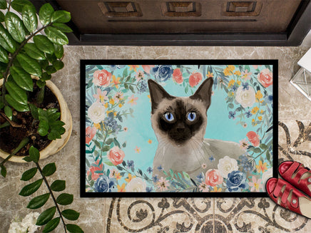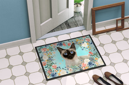 Decorate your space with Caroline's Treasures Siamese artwork on a Doormat. Welcome your guests in style with Caroline's Treasures Artwork Door Mat, designed to withstand almost any weather condition. This mat, measuring approximately 24 by 36 inches, is held together by durable black binding tape. Its top layer, composed of polyester felt, is dyed with the eye-catching image you see on the mat. A few layers below provide the mat with stability, while its rubber bottom is stamped to help prevent slipping and ensures safety. Caroline's Treasures mat works wonderfully as both an indoor or outdoor door mat. For cleaning, simply hose it off with water or use a power washer - no need for any cleaner that produces suds. Avoid scrubbing with a brush, instead, opt for the vacuum on floor setting. Designed manufactured and printed in the USA, this mat is a perfect addition to your porch, outdoor kitchen, entryway, or any indoor space. Its unique design makes it a charming decorative rug that greets your guests and adds a stylish touch to your home decor.