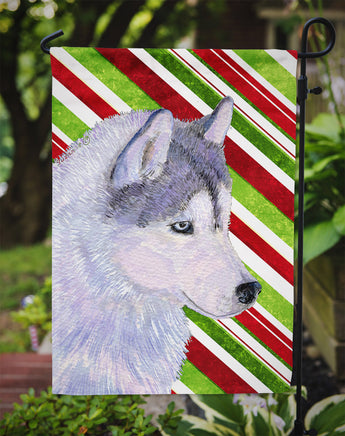 Siberian Husky Candy Cane Holiday Christmas Flag Garden Size