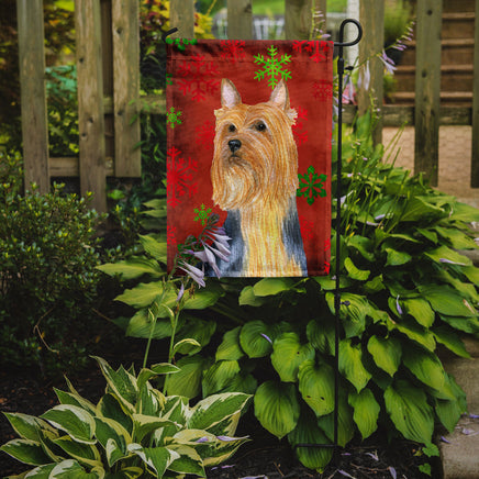 Decorate your space with Caroline's Treasures Christmas Silky Terrier artwork on a Garden Flag. Enhance the beauty of your garden, patio, or yard with Caroline's Treasures Decorative Garden Flag, proudly made in the USA. Crafted from two pieces of thick, double-sided polyester fabric, this 2-ply garden flag is designed to withstand various weather conditions, making it water-resistant and weatherproof. Featuring correctly readable words on both sides, this garden flag offers a delightful visual experience from any angle. With its heavier weight, it stands out among other garden flags, ensuring stability and durability even in wind, rain, and snow. Measuring approximately 11 1/4 inches by 15 1/2 inches, this flag allows you to personalize your outdoor decor. It comes with a 1 1/2-inch sleeve sewn in, allowing easy attachment to any standard garden flag stand or garden size porch hanger (sold separately). Make a statement in your outdoor space with Caroline's Treasures Decorative Garden Flag, a vibrant and high-quality flag that adds color and personality to your surroundings. Proudly made in the USA, it's a symbol of quality craftsmanship and attention to detail.