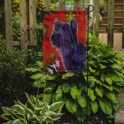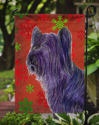 Decorate your space with Caroline's Treasures Christmas Skye Terrier artwork on a Garden Flag. Enhance the beauty of your garden, patio, or yard with Caroline's Treasures Decorative Garden Flag, proudly made in the USA. Crafted from two pieces of thick, double-sided polyester fabric, this 2-ply garden flag is designed to withstand various weather conditions, making it water-resistant and weatherproof. Featuring correctly readable words on both sides, this garden flag offers a delightful visual experience from any angle. With its heavier weight, it stands out among other garden flags, ensuring stability and durability even in wind, rain, and snow. Measuring approximately 11 1/4 inches by 15 1/2 inches, this flag allows you to personalize your outdoor decor. It comes with a 1 1/2-inch sleeve sewn in, allowing easy attachment to any standard garden flag stand or garden size porch hanger (sold separately). Make a statement in your outdoor space with Caroline's Treasures Decorative Garden Flag, a vibrant and high-quality flag that adds color and personality to your surroundings. Proudly made in the USA, it's a symbol of quality craftsmanship and attention to detail.