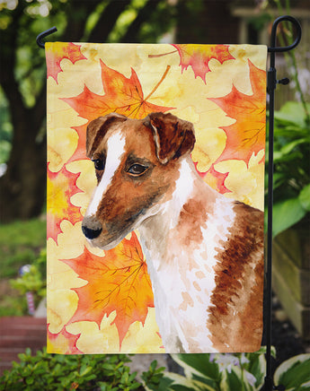 Decorate your space with our Fox Terrier artwork on a Garden Flag. Enhance the beauty of your garden, patio, or yard with Caroline's Treasures Decorative Garden Flag, proudly made in the USA. Crafted from two pieces of thick, double-sided polyester fabric, this 2-ply garden flag is designed to withstand various weather conditions, making it water-resistant and weatherproof. Featuring correctly readable words on both sides, this garden flag offers a delightful visual experience from any angle. With its heavier weight, it stands out among other garden flags, ensuring stability and durability even in wind, rain, and snow. Measuring approximately 11 1/4 inches by 15 1/2 inches, this flag allows you to personalize your outdoor decor. It comes with a 1 1/2-inch sleeve sewn in, allowing easy attachment to any standard garden flag stand or garden size porch hanger (sold separately). Make a statement in your outdoor space with Caroline's Treasures Decorative Garden Flag, a vibrant and high-quality flag that adds color and personality to your surroundings. Proudly made in the USA, it's a symbol of quality craftsmanship and attention to detail.