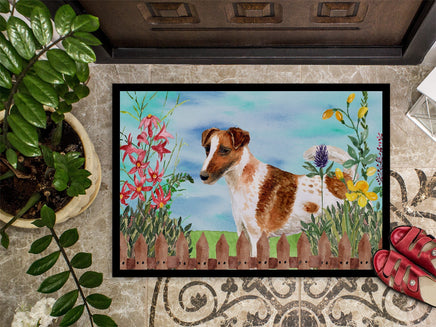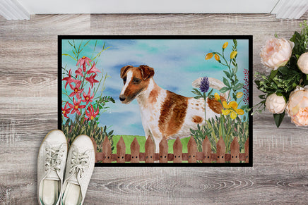 Decorate your space with Caroline's Treasures Fox Terrier artwork on a Doormat. Bring a bit of Spring into your home with a Spring Doormat. Welcome your guests in style with Caroline's Treasures Artwork Door Mat, designed to withstand almost any weather condition. This mat, measuring approximately 18 by 27 inches, is held together by durable black binding tape. Its top layer, composed of polyester felt, is dyed with the eye-catching image you see on the mat. A few layers below provide the mat with stability, while its rubber bottom is stamped to help prevent slipping and ensures safety. Caroline's Treasures mat works wonderfully as both an indoor or outdoor door mat. For cleaning, simply hose it off with water or use a power washer - no need for any cleaner that produces suds. Avoid scrubbing with a brush, instead, opt for the vacuum on floor setting. Designed manufactured and printed in the USA, this mat is a perfect addition to your porch, outdoor kitchen, entryway, or any indoor space. Its unique design makes it a charming decorative rug that greets your guests and adds a stylish touch to your home decor.