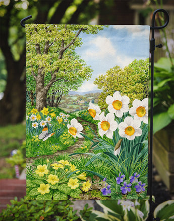 Bring a bit of Spring into your home with a Spring Garden Flag. Enhance the beauty of your garden, patio, or yard with Caroline's Treasures Decorative Garden Flag, proudly made in the USA. Crafted from two pieces of thick, double-sided polyester fabric, this 2-ply garden flag is designed to withstand various weather conditions, making it water-resistant and weatherproof. Featuring correctly readable words on both sides, this garden flag offers a delightful visual experience from any angle. With its heavier weight, it stands out among other garden flags, ensuring stability and durability even in wind, rain, and snow. Measuring approximately 11 1/4 inches by 15 1/2 inches, this flag allows you to personalize your outdoor decor. It comes with a 1 1/2-inch sleeve sewn in, allowing easy attachment to any standard garden flag stand or garden size porch hanger (sold separately). Make a statement in your outdoor space with Caroline's Treasures Decorative Garden Flag, a vibrant and high-quality flag that adds color and personality to your surroundings. Proudly made in the USA, it's a symbol of quality craftsmanship and attention to detail.