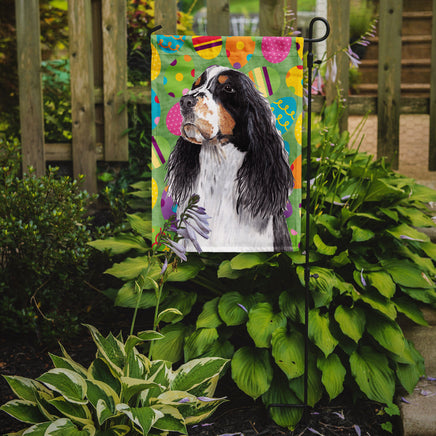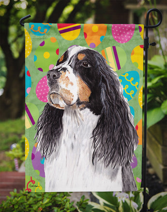 Decorate your space with Caroline's Treasures Easter English Springer Spaniel artwork on a Garden Flag. Enhance the beauty of your garden, patio, or yard with Caroline's Treasures Decorative Garden Flag, proudly made in the USA. Crafted from two pieces of thick, double-sided polyester fabric, this 2-ply garden flag is designed to withstand various weather conditions, making it water-resistant and weatherproof. Featuring correctly readable words on both sides, this garden flag offers a delightful visual experience from any angle. With its heavier weight, it stands out among other garden flags, ensuring stability and durability even in wind, rain, and snow. Measuring approximately 11 1/4 inches by 15 1/2 inches, this flag allows you to personalize your outdoor decor. It comes with a 1 1/2-inch sleeve sewn in, allowing easy attachment to any standard garden flag stand or garden size porch hanger (sold separately). Make a statement in your outdoor space with Caroline's Treasures Decorative Garden Flag, a vibrant and high-quality flag that adds color and personality to your surroundings. Proudly made in the USA, it's a symbol of quality craftsmanship and attention to detail.