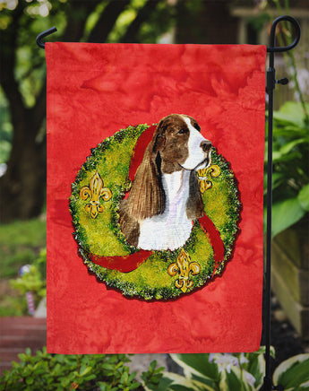 Decorate your space with Caroline's Treasures English Springer Spaniel artwork on a Garden Flag. Enhance the beauty of your garden, patio, or yard with Caroline's Treasures Decorative Garden Flag, proudly made in the USA. Crafted from two pieces of thick, double-sided polyester fabric, this 2-ply garden flag is designed to withstand various weather conditions, making it water-resistant and weatherproof. Featuring correctly readable words on both sides, this garden flag offers a delightful visual experience from any angle. With its heavier weight, it stands out among other garden flags, ensuring stability and durability even in wind, rain, and snow. Measuring approximately 11 1/4 inches by 15 1/2 inches, this flag allows you to personalize your outdoor decor. It comes with a 1 1/2-inch sleeve sewn in, allowing easy attachment to any standard garden flag stand or garden size porch hanger (sold separately). Make a statement in your outdoor space with Caroline's Treasures Decorative Garden Flag, a vibrant and high-quality flag that adds color and personality to your surroundings. Proudly made in the USA, it's a symbol of quality craftsmanship and attention to detail.