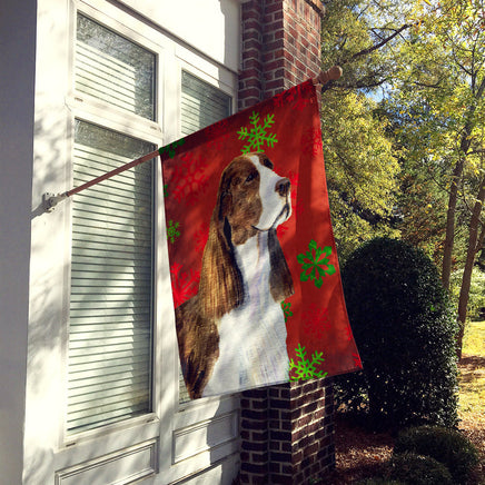 Springer Spaniel Red Green Snowflakes Holiday Christmas Flag Canvas House Size