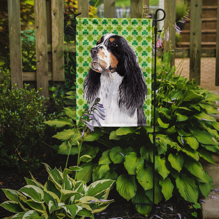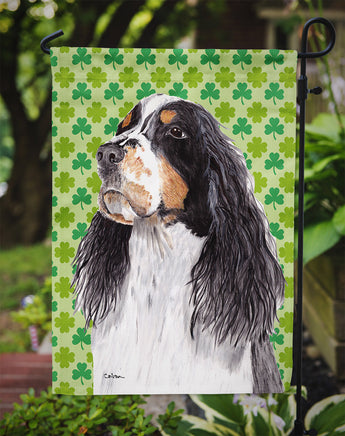 Decorate your space with Caroline's Treasures St Patrick's Day English Springer Spaniel artwork on a Garden Flag. Enhance the beauty of your garden, patio, or yard with Caroline's Treasures Decorative Garden Flag, proudly made in the USA. Crafted from two pieces of thick, double-sided polyester fabric, this 2-ply garden flag is designed to withstand various weather conditions, making it water-resistant and weatherproof. Featuring correctly readable words on both sides, this garden flag offers a delightful visual experience from any angle. With its heavier weight, it stands out among other garden flags, ensuring stability and durability even in wind, rain, and snow. Measuring approximately 11 1/4 inches by 15 1/2 inches, this flag allows you to personalize your outdoor decor. It comes with a 1 1/2-inch sleeve sewn in, allowing easy attachment to any standard garden flag stand or garden size porch hanger (sold separately). Make a statement in your outdoor space with Caroline's Treasures Decorative Garden Flag, a vibrant and high-quality flag that adds color and personality to your surroundings. Proudly made in the USA, it's a symbol of quality craftsmanship and attention to detail.