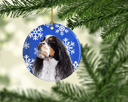Springer Spaniel Winter Snowflakes Holiday Ceramic Ornament SC9361