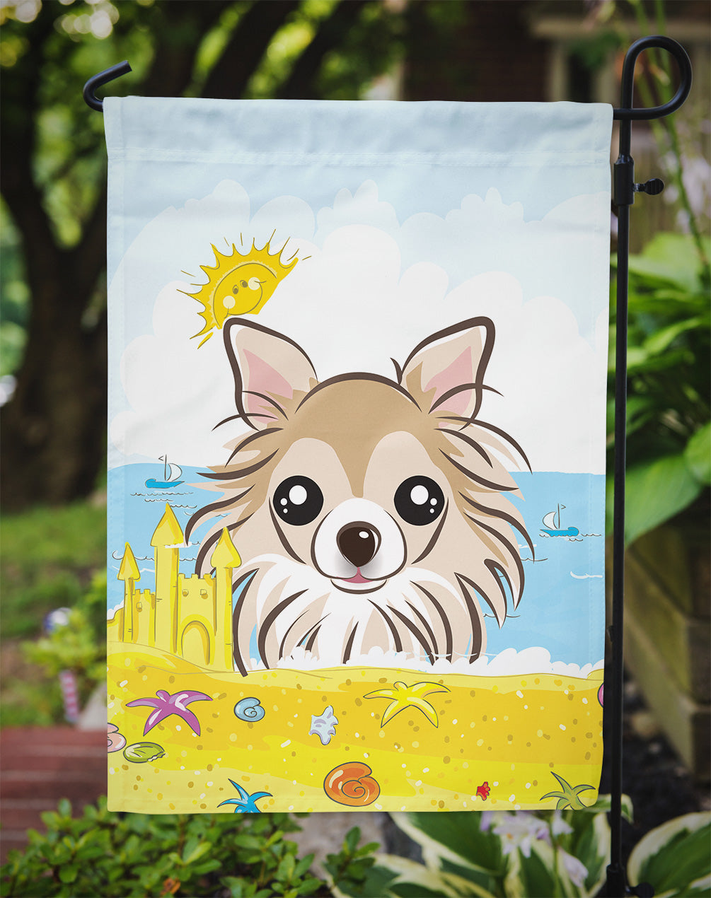 Decorate your space with Caroline's Treasures Chihuahua artwork on a Garden Flag. Bring a bit of Summer into your home with a Summer Garden Flag. Enhance the beauty of your garden, patio, or yard with Caroline's Treasures Decorative Garden Flag, proudly made in the USA. Crafted from two pieces of thick, double-sided polyester fabric, this 2-ply garden flag is designed to withstand various weather conditions, making it water-resistant and weatherproof. Featuring correctly readable words on both sides, this garden flag offers a delightful visual experience from any angle. With its heavier weight, it stands out among other garden flags, ensuring stability and durability even in wind, rain, and snow. Measuring approximately 11 1/4 inches by 15 1/2 inches, this flag allows you to personalize your outdoor decor. It comes with a 1 1/2-inch sleeve sewn in, allowing easy attachment to any standard garden flag stand or garden size porch hanger (sold separately). Make a statement in your outdoor space with Caroline's Treasures Decorative Garden Flag, a vibrant and high-quality flag that adds color and personality to your surroundings. Proudly made in the USA, it's a symbol of quality craftsmanship and attention to detail.