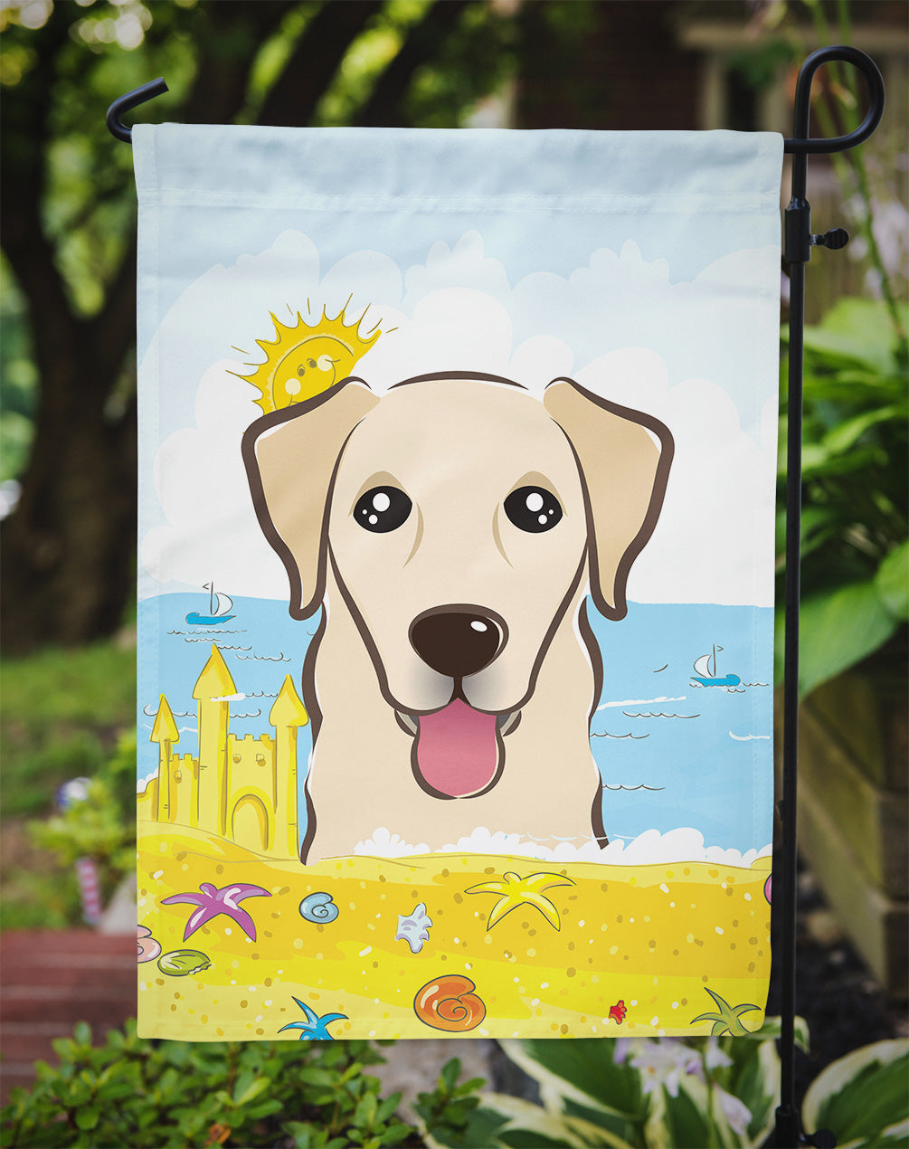 Decorate your space with Caroline's Treasures Golden Retriever artwork on a Garden Flag. Bring a bit of Summer into your home with a Summer Garden Flag. Enhance the beauty of your garden, patio, or yard with Caroline's Treasures Decorative Garden Flag, proudly made in the USA. Crafted from two pieces of thick, double-sided polyester fabric, this 2-ply garden flag is designed to withstand various weather conditions, making it water-resistant and weatherproof. Featuring correctly readable words on both sides, this garden flag offers a delightful visual experience from any angle. With its heavier weight, it stands out among other garden flags, ensuring stability and durability even in wind, rain, and snow. Measuring approximately 11 1/4 inches by 15 1/2 inches, this flag allows you to personalize your outdoor decor. It comes with a 1 1/2-inch sleeve sewn in, allowing easy attachment to any standard garden flag stand or garden size porch hanger (sold separately). Make a statement in your outdoor space with Caroline's Treasures Decorative Garden Flag, a vibrant and high-quality flag that adds color and personality to your surroundings. Proudly made in the USA, it's a symbol of quality craftsmanship and attention to detail.