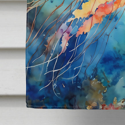 Decorate your space with Caroline's Treasures Jellyfish artwork on a Large Flag. Presenting Caroline's Treasures Heavy Duty Polyester House Size Decorative Sleeve Pole Flag, a vibrant addition to enhance the aesthetic appeal of your home. This large decorative flag, measuring approximately 28 x 40 inches, offers ample coverage and visibility. Each flag is meticulously sewn and made individually, ensuring a unique piece that may slightly vary in size. It's a sleeve pole flag, designed to fit a standard decorative flag pole effortlessly. Please note that the flag pole and bracket are not included and should be purchased separately. What sets Caroline's Treasures flag apart is its dual-sided print. The design is mirrored on both sides of the fabric, allowing for uniform visibility regardless of the angle. To ensure lasting vibrancy and durability, the dyes are heat-set into the fabric. This ensures your flag remains bright and captivating through various weather conditions. Elevate the look of your home with Caroline's Treasures Heavy Duty Polyester House Size Decorative Sleeve Pole Flag!