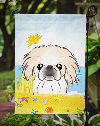 Decorate your space with Caroline's Treasures Pekingese artwork on a Garden Flag. Bring a bit of Summer into your home with a Summer Garden Flag. Enhance the beauty of your garden, patio, or yard with Caroline's Treasures Decorative Garden Flag, proudly made in the USA. Crafted from two pieces of thick, double-sided polyester fabric, this 2-ply garden flag is designed to withstand various weather conditions, making it water-resistant and weatherproof. Featuring correctly readable words on both sides, this garden flag offers a delightful visual experience from any angle. With its heavier weight, it stands out among other garden flags, ensuring stability and durability even in wind, rain, and snow. Measuring approximately 11 1/4 inches by 15 1/2 inches, this flag allows you to personalize your outdoor decor. It comes with a 1 1/2-inch sleeve sewn in, allowing easy attachment to any standard garden flag stand or garden size porch hanger (sold separately). Make a statement in your outdoor space with Caroline's Treasures Decorative Garden Flag, a vibrant and high-quality flag that adds color and personality to your surroundings. Proudly made in the USA, it's a symbol of quality craftsmanship and attention to detail.