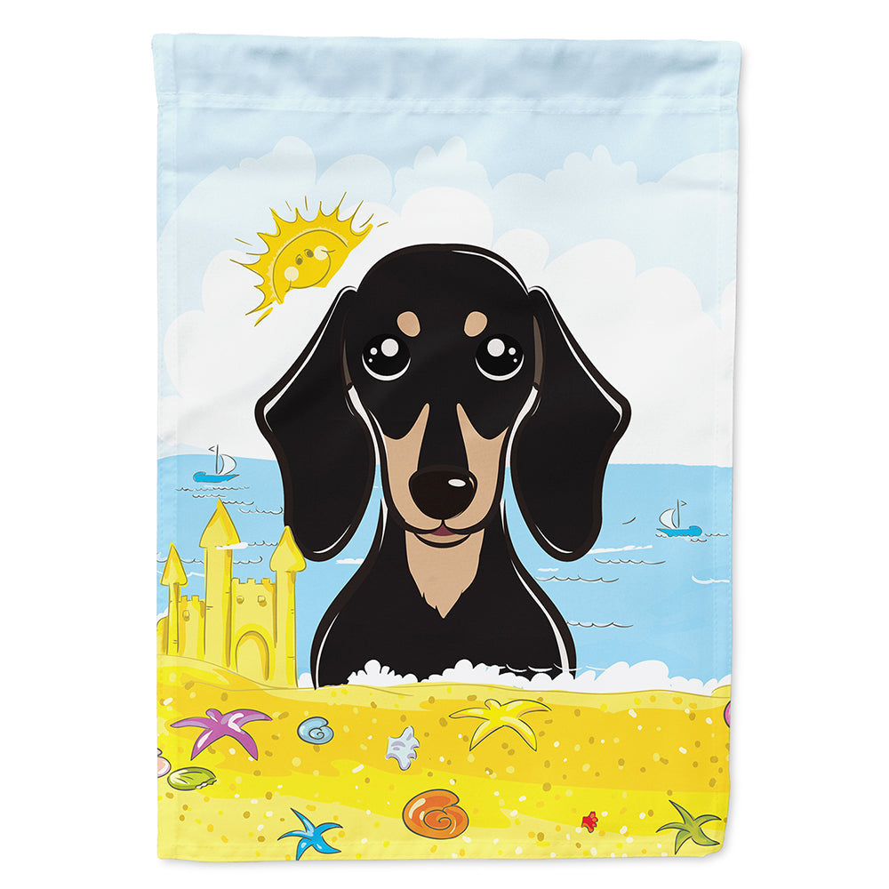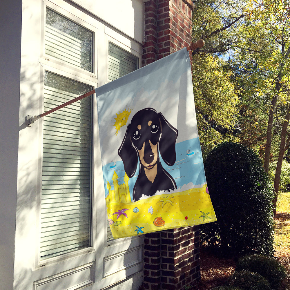 Smooth Black and Tan Dachshund Summer Beach Flag Canvas House Size BB2083CHF