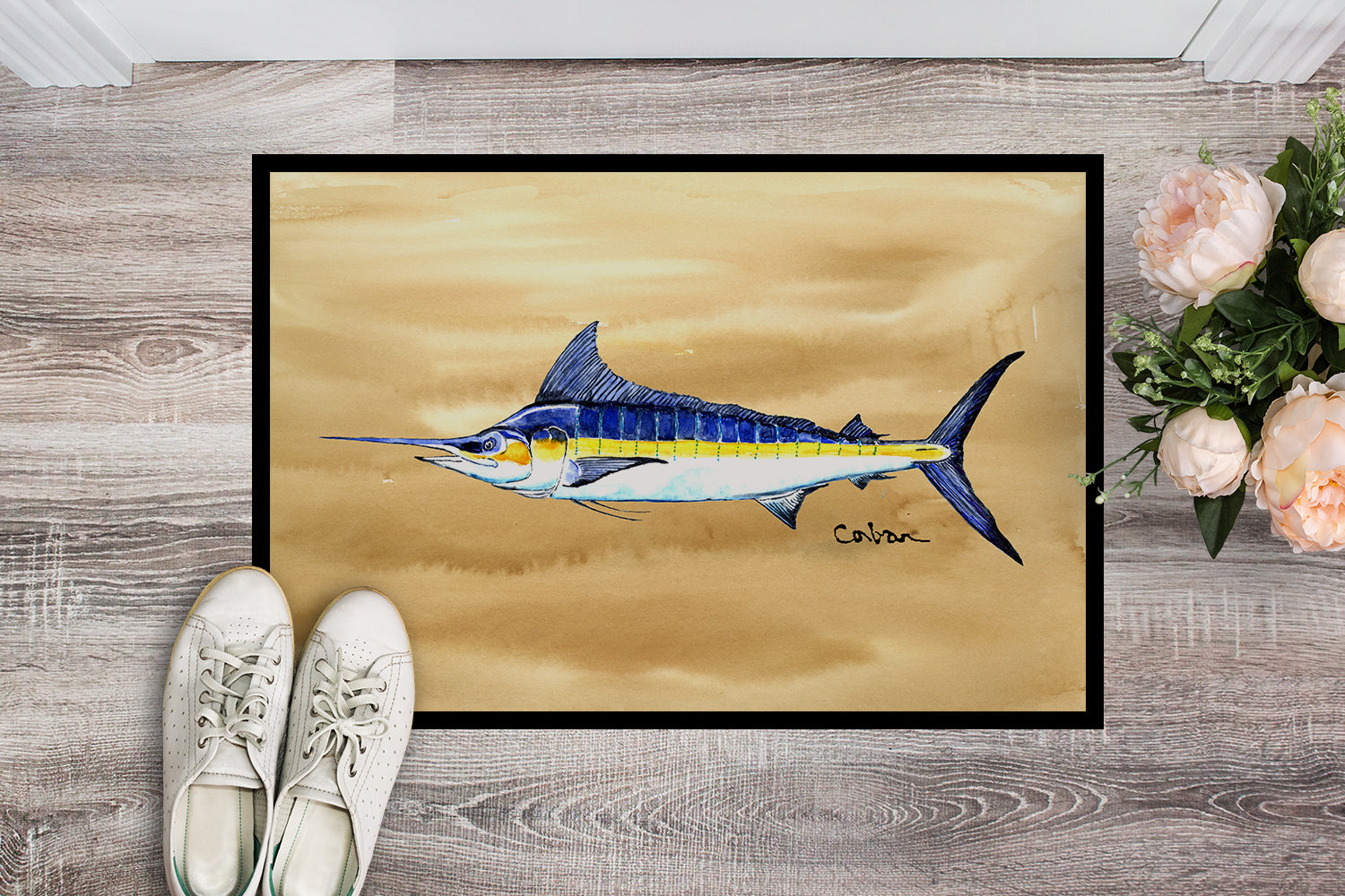 Swordfish on Sandy Beach Indoor or Outdoor Mat 24x36 8754JMAT