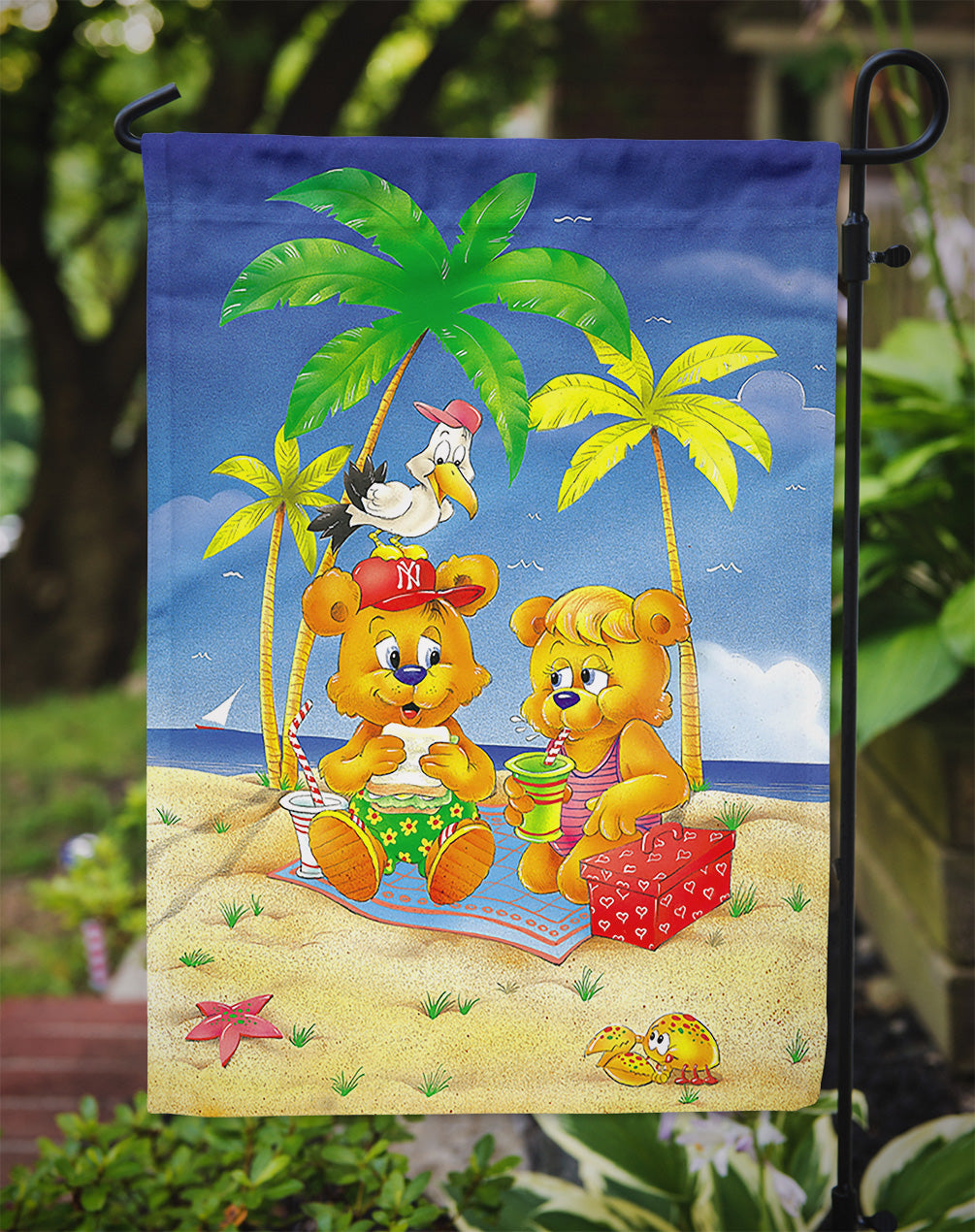 Decorate your space with Caroline's Treasures Bear artwork on a Garden Flag. Enhance the beauty of your garden, patio, or yard with Caroline's Treasures Decorative Garden Flag, proudly made in the USA. Crafted from two pieces of thick, double-sided polyester fabric, this 2-ply garden flag is designed to withstand various weather conditions, making it water-resistant and weatherproof. Featuring correctly readable words on both sides, this garden flag offers a delightful visual experience from any angle. With its heavier weight, it stands out among other garden flags, ensuring stability and durability even in wind, rain, and snow. Measuring approximately 11 1/4 inches by 15 1/2 inches, this flag allows you to personalize your outdoor decor. It comes with a 1 1/2-inch sleeve sewn in, allowing easy attachment to any standard garden flag stand or garden size porch hanger (sold separately). Make a statement in your outdoor space with Caroline's Treasures Decorative Garden Flag, a vibrant and high-quality flag that adds color and personality to your surroundings. Proudly made in the USA, it's a symbol of quality craftsmanship and attention to detail.