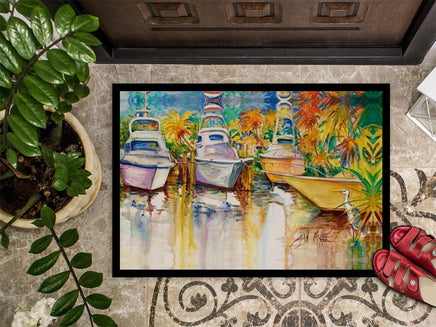 Blue Heron and Deep Sea Fishing Boats Indoor or Outdoor Mat 24x36 JMK1051JMAT