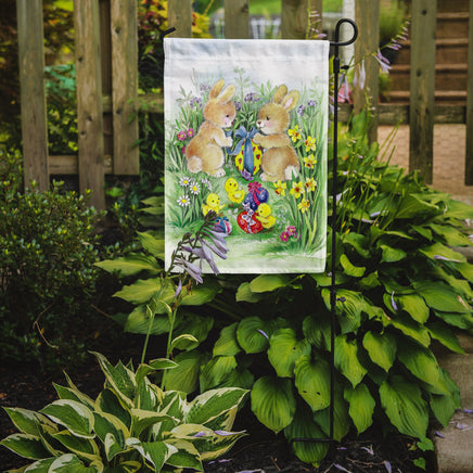 Decorate your space with Caroline's Treasures Easter artwork on a Garden Flag. Enhance the beauty of your garden, patio, or yard with Caroline's Treasures Decorative Garden Flag, proudly made in the USA. Crafted from two pieces of thick, double-sided polyester fabric, this 2-ply garden flag is designed to withstand various weather conditions, making it water-resistant and weatherproof. Featuring correctly readable words on both sides, this garden flag offers a delightful visual experience from any angle. With its heavier weight, it stands out among other garden flags, ensuring stability and durability even in wind, rain, and snow. Measuring approximately 11 1/4 inches by 15 1/2 inches, this flag allows you to personalize your outdoor decor. It comes with a 1 1/2-inch sleeve sewn in, allowing easy attachment to any standard garden flag stand or garden size porch hanger (sold separately). Make a statement in your outdoor space with Caroline's Treasures Decorative Garden Flag, a vibrant and high-quality flag that adds color and personality to your surroundings. Proudly made in the USA, it's a symbol of quality craftsmanship and attention to detail.