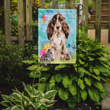 Decorate your space with Caroline's Treasures Easter Cocker Spaniel artwork on a Garden Flag. Enhance the beauty of your garden, patio, or yard with Caroline's Treasures Decorative Garden Flag, proudly made in the USA. Crafted from two pieces of thick, double-sided polyester fabric, this 2-ply garden flag is designed to withstand various weather conditions, making it water-resistant and weatherproof. Featuring correctly readable words on both sides, this garden flag offers a delightful visual experience from any angle. With its heavier weight, it stands out among other garden flags, ensuring stability and durability even in wind, rain, and snow. Measuring approximately 11 1/4 inches by 15 1/2 inches, this flag allows you to personalize your outdoor decor. It comes with a 1 1/2-inch sleeve sewn in, allowing easy attachment to any standard garden flag stand or garden size porch hanger (sold separately). Make a statement in your outdoor space with Caroline's Treasures Decorative Garden Flag, a vibrant and high-quality flag that adds color and personality to your surroundings. Proudly made in the USA, it's a symbol of quality craftsmanship and attention to detail.