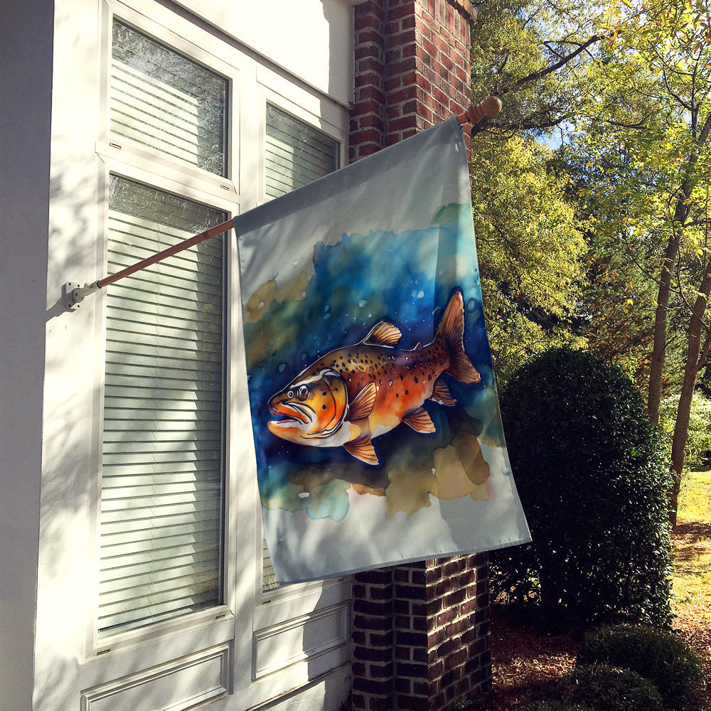Decorate your space with Caroline's Treasures Brown Trout artwork on a Large Flag. Presenting Caroline's Treasures Heavy Duty Polyester House Size Decorative Sleeve Pole Flag, a vibrant addition to enhance the aesthetic appeal of your home. This large decorative flag, measuring approximately 28 x 40 inches, offers ample coverage and visibility. Each flag is meticulously sewn and made individually, ensuring a unique piece that may slightly vary in size. It's a sleeve pole flag, designed to fit a standard decorative flag pole effortlessly. Please note that the flag pole and bracket are not included and should be purchased separately. What sets Caroline's Treasures flag apart is its dual-sided print. The design is mirrored on both sides of the fabric, allowing for uniform visibility regardless of the angle. To ensure lasting vibrancy and durability, the dyes are heat-set into the fabric. This ensures your flag remains bright and captivating through various weather conditions. Elevate the look of your home with Caroline's Treasures Heavy Duty Polyester House Size Decorative Sleeve Pole Flag!